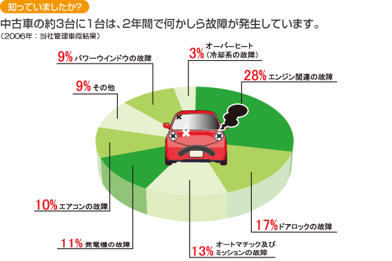絶対に故障しないということはありません。また、中古車となると前のオーナーの使い方、手入れの仕方でかなり違ってきます。